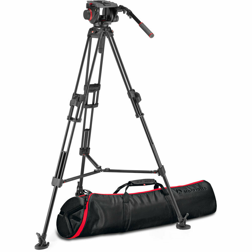 Видеосистема включает в себя профессиональную жидкостную видеоголову Manfrotto 509 и алюминиевый штатив 645 Fast Twin с двойными ногами.