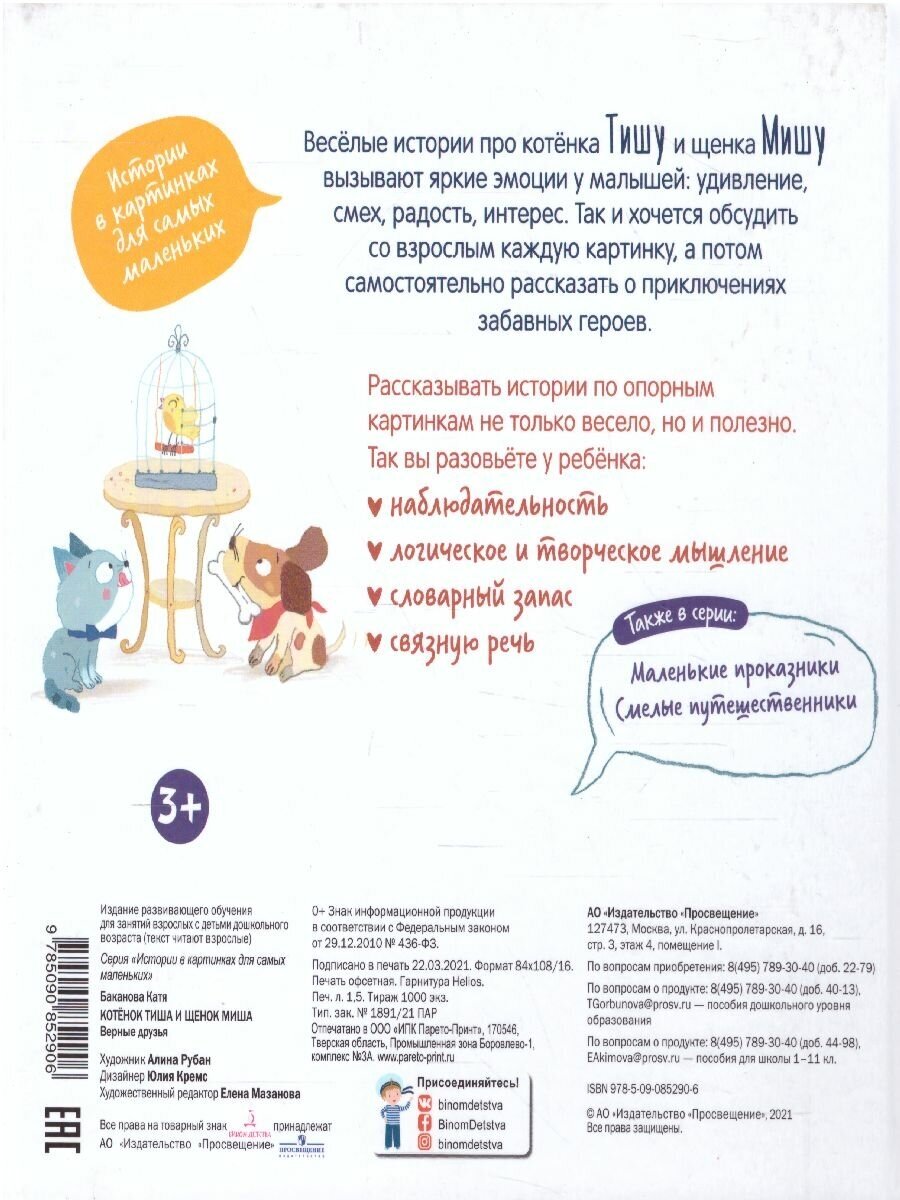Сервис сравнения цен СкидкаГИД предлагает сравнить цены на товар «Книга: Котенок Тиша и щенок Миша. Верные друзья (Истории в картинках для самых маленьких); БИНОМ ДЕТСТВА, 2021»