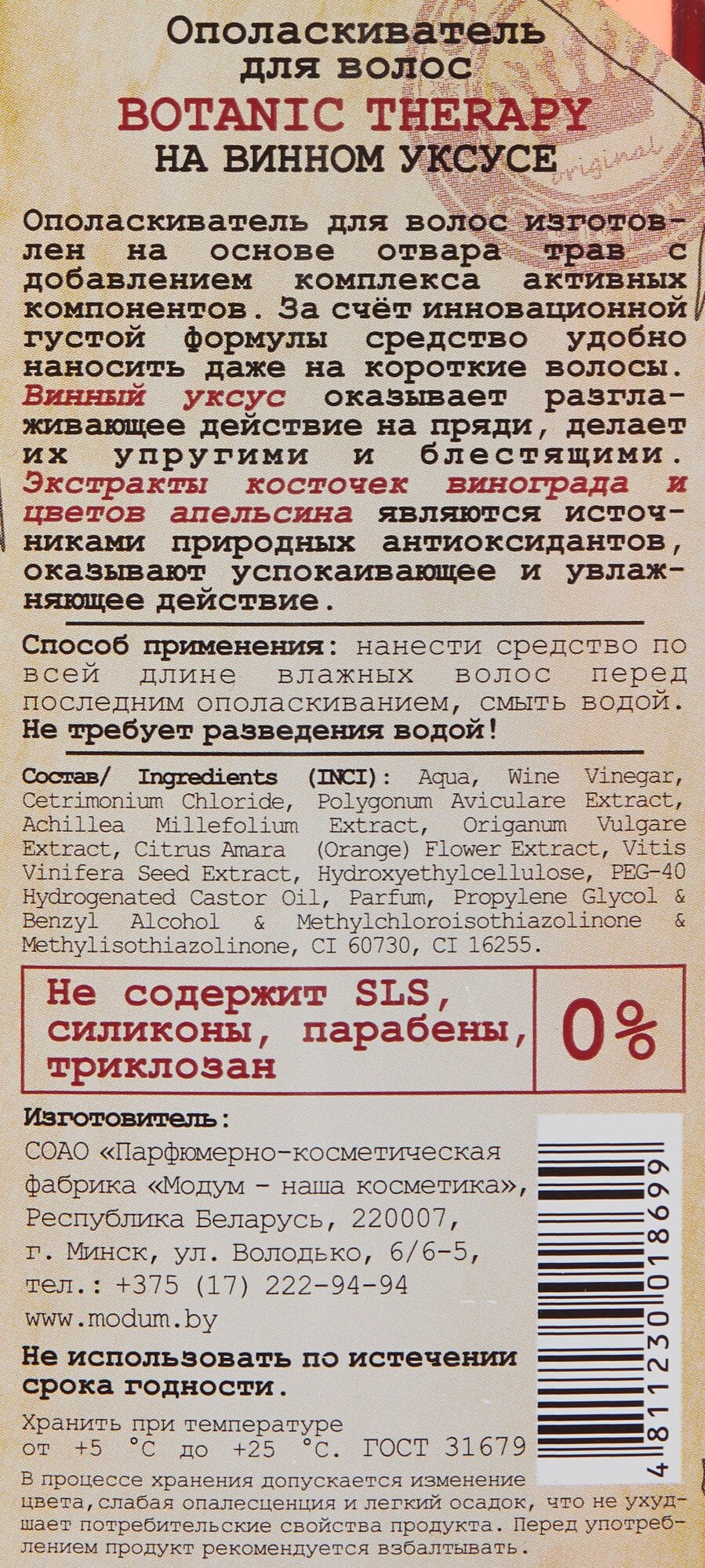 Ополаскиватель для волос на винном уксусе Botanic therapy 280 мл Модум-наша косметика СОАО (578696)