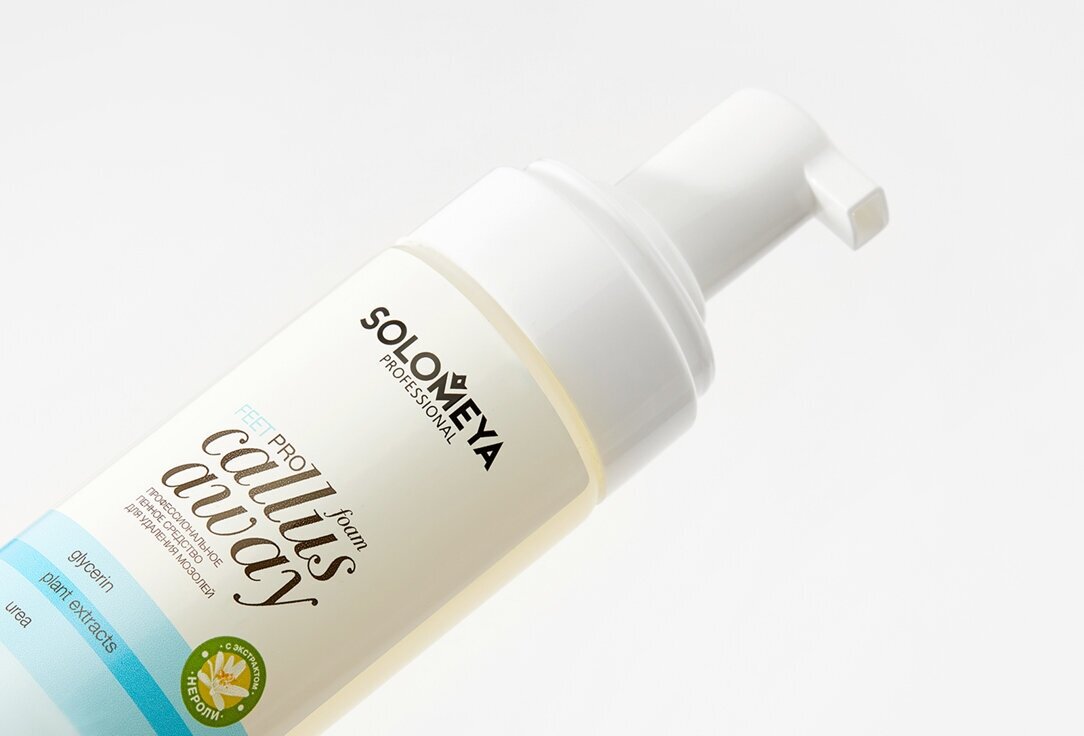 Профессиональное средство для удаления мозолей (пенка) Solomeya с формулой активного действия быстро и легко размягчает и удаляет натоптыши и мозоли. Содержит комплекс активных компонентов и растительных экстрактов, которые разрушают связи между ороговевшими клетками, не повреждая при этом здоровые участки кожи. Экстракт нероли стимулирует рост новых клеток и оказывает омолаживающий эффект, делая средство подходящим для всех типов кожи. Однако свое максимальное действие средство оказывает на сухую и чувствительную кожу. Регулярное применение средства предотвращает появление мозолей и натоптышей, а также защищает от сухости и трещин. Подходит для классического, необрезного, аппаратного и СПА педикюра. Идеально для диабетической стопы. Не используйте средство чаще 2 раз в неделю.