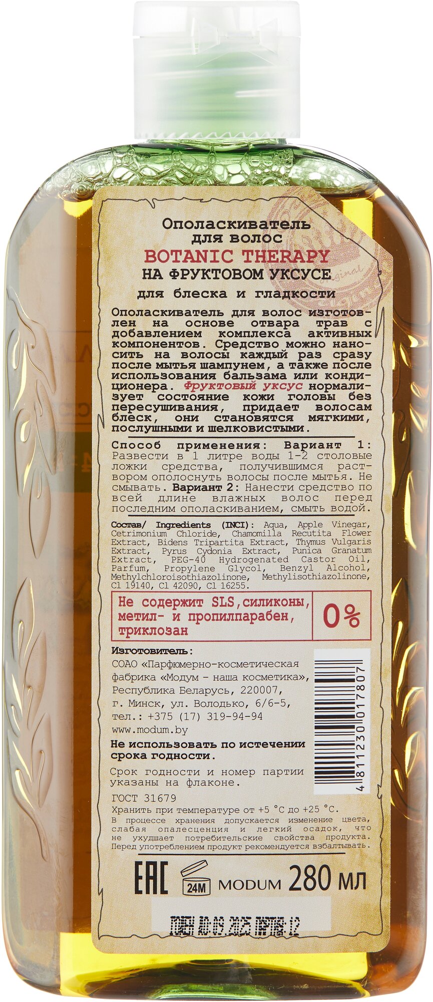 Ополаскиватель для волос на фруктовом уксусе для блеска и гладкости Botanic therapy 280 мл Модум-наша косметика СОАО (578696)
