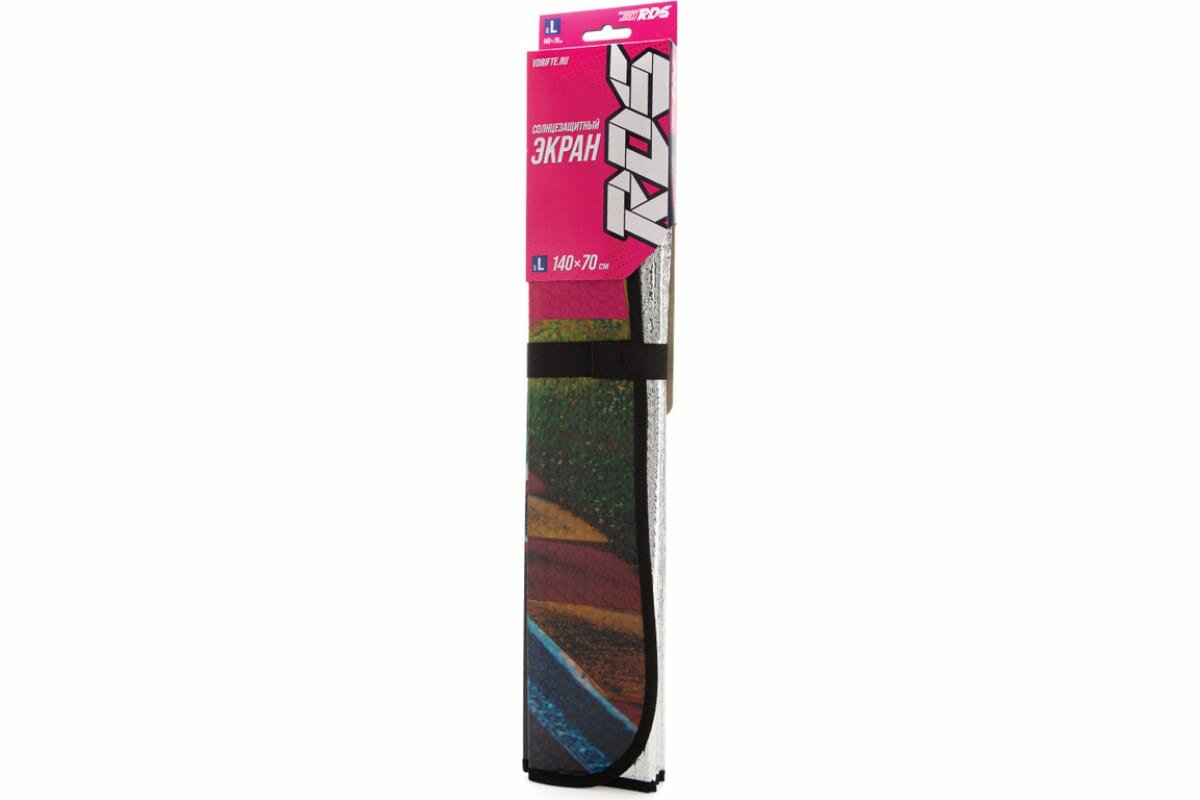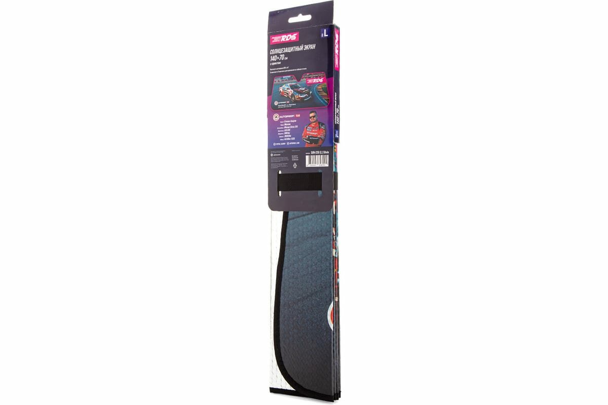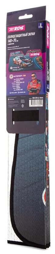 Экран солнцезащитный Autoprofi SUN-220 (L) размер 140x70 см. SilviaСолнцезащитный экран на лобовое стекло, серия RDS, светоотражающий, одна из сторон с цветной печатью матовая.Российская Дрифт Серия (RDS GP) является организатором соревнований по дрифту в России и входит в тройку крупнейших мировых соревнований по дрифту, а также является самой посещаемой российской автоспортивной серией.На солнцезащитном экране изображен автомобиль Nissan Silvia S15 компании АВТОПРОФИ, который является постоянным участником Российской Дрифт Серии (RDS GP). Пилот спорткара – Степан Азаров, он же генеральный директор ТД АВТОПРОФИ, входит в Топ 10 лучших пилотов RDS по итогам 2020г.Увеличенный вырез для зеркала заднего вида адаптирован под современные автомобили премиум класса с опциями датчика дождя и света, камеры контроля полосы и освещенности. В качестве материала используется Single Bubble - комбинированный 3-слойный материал: алюминиевая фольга, слой воздушно-пузырчатой пленки и алюминиевая фольга. На стекло экран крепится с помощью идущих в комплекте присосок.Экран незаменим при продолжительных стоянках на открытых парковках, во время пикника или на пляже. Он эффективно отражает солнечные лучи, защищая салон от перегрева и предотвращая выгорание материалов интерьера во время стоянок на открытом пространстве.