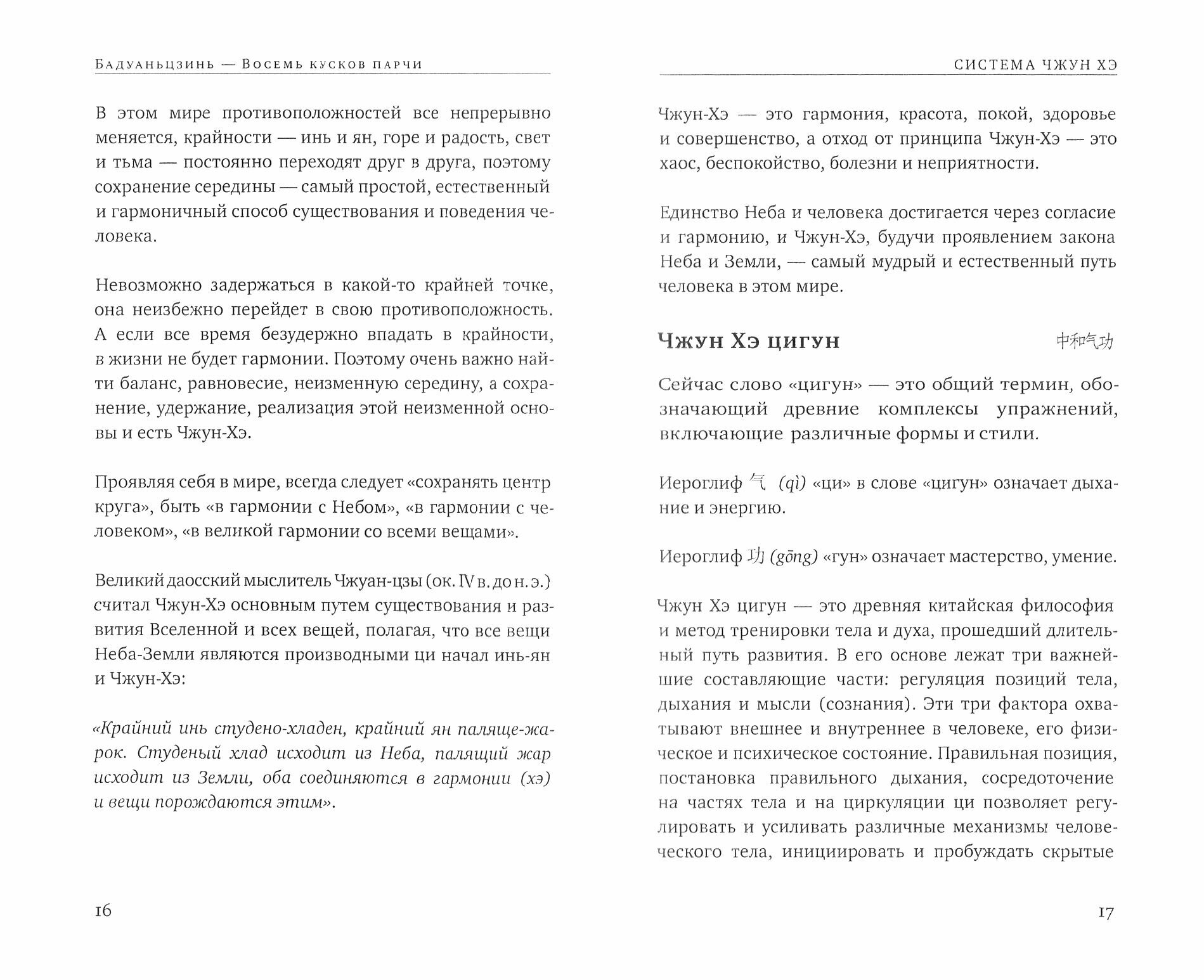 В книге представлены китайские оздоровительные комплексы Бадуаньцзинь («Восемь кусков парчи») и «Железная рубашка» по системе школы Чжун Хэ Мастера Ван Линя. Основное внимание здесь уделяется гармоничному развитию тела, здоровью и работе с внутренней энергией. Комплексы легко разучить самостоятельно, даже если вы никогда раньше не занимались ушу, тайцзи или цигун. Они подходит для любого возраста и уровня физической подготовки, а их регулярное выполнение приносит здоровье, энергию, силу, гибкость, спокойствие и хорошее настроение.