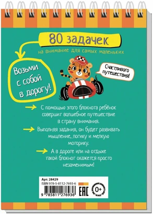 Открыв этот блокнот, ребёнок попадёт в волшебную страну с задачками на внимание. Вооружившись карандашом, он будет искать отличия в картинках, потерянные вещи, спрятавшихся животных - развивать внимание, мелкую моторику и мышление. Малыши могут показывать ответы пальчиком. В дороге или на отдыхе такой блокнот будет просто незаменим.