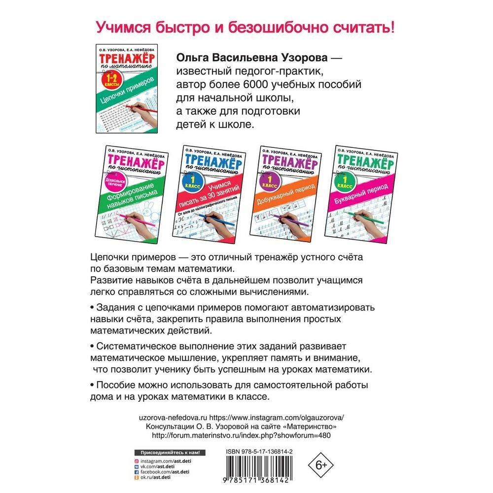 Тренажер по математике.1-2 классы. Цепочки примеров (Узорова Ольга Васильевна); Сова. Малыш (Обучающая и развивающая литература), 2021