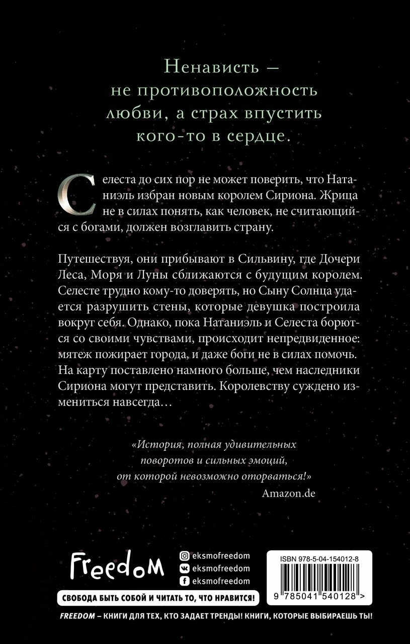 Вторая часть вышла динамичнее первой, и я бы даже сказала интереснее. Если в первой книге авторша погружала нас в мир героев и рассказывала, что и как есть, то во второй уже начинаются кое какие действия, начинает развиваться сюжет. Мы наконец узнаем о родителях Селесты и причинах по которым её бросили.