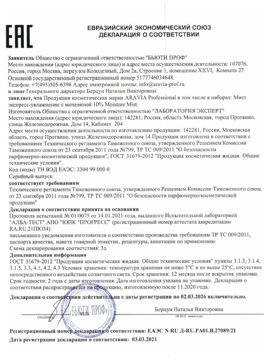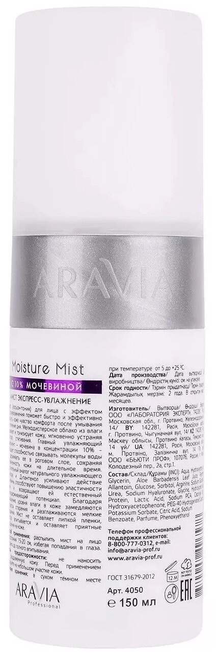Мист экспресс-увлажнение с мочевиной 10% Moisture Mist Aravia Professional 150мл ООО ЛАБОРАТОРИЯ ЭКСПЕРТ (1525008)