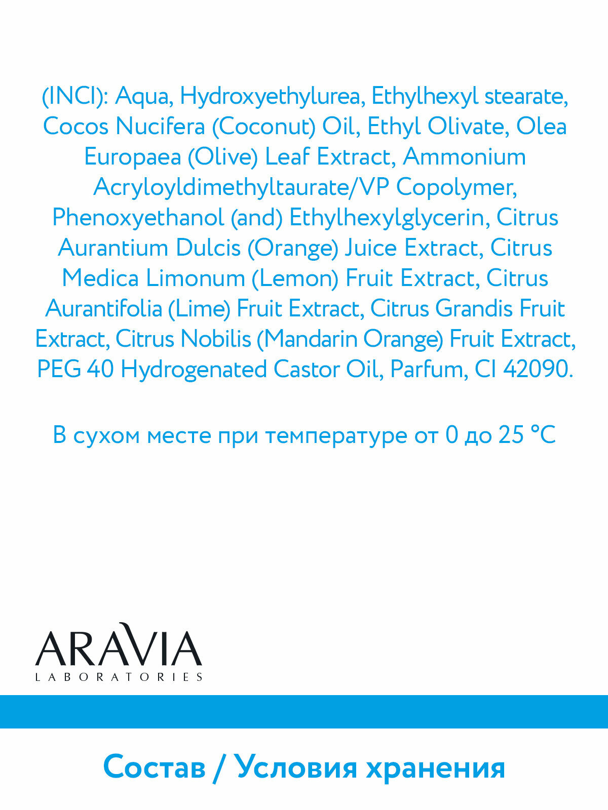 | Состав | Аqua, Hydroxyethylurea, Ethylhexyl stearate, Cocos Nucifera (Coconut) Oil, Ethyl Olivate, Olea Europaea (Olive) Leaf Extract, Ammonium Acryloyldimethyltaurate/VP Copolymer, Phenoxyethanol (and) Ethylhexylglycerin, Citrus Aurantium Dulcis (Orange) Juice Extract, Citrus Medica Limonum (Lemon) Fruit Extract, Citrus Aurantifolia (Lime) Fruit Extract, Citrus Grandis Fruit Extract, Citrus Nobilis (Mandarin Orange) Fruit Extract, PEG 40 Hydrogenated Castor Oil, Benzyl alcohol (and) Ethylhexylglycerin, PEG 40 Hydrogenated Castor Oil, Parfum, СI 42090 |