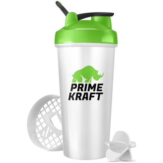 Шейкер PRIME KRAFT с венчиком зеленыйУдобный шейкер для смешивания протеиновых коктейлей и гейнеров. Оснащён пластмассовым венчиком для размешивания и сеточкой. Плотная крышка позволяет хорошо размешать содержимое. Широкое горлышко позволяет комфортно пить или переливать в другую емкость. Материал: пищевой пластик. Объем: 600 мл.