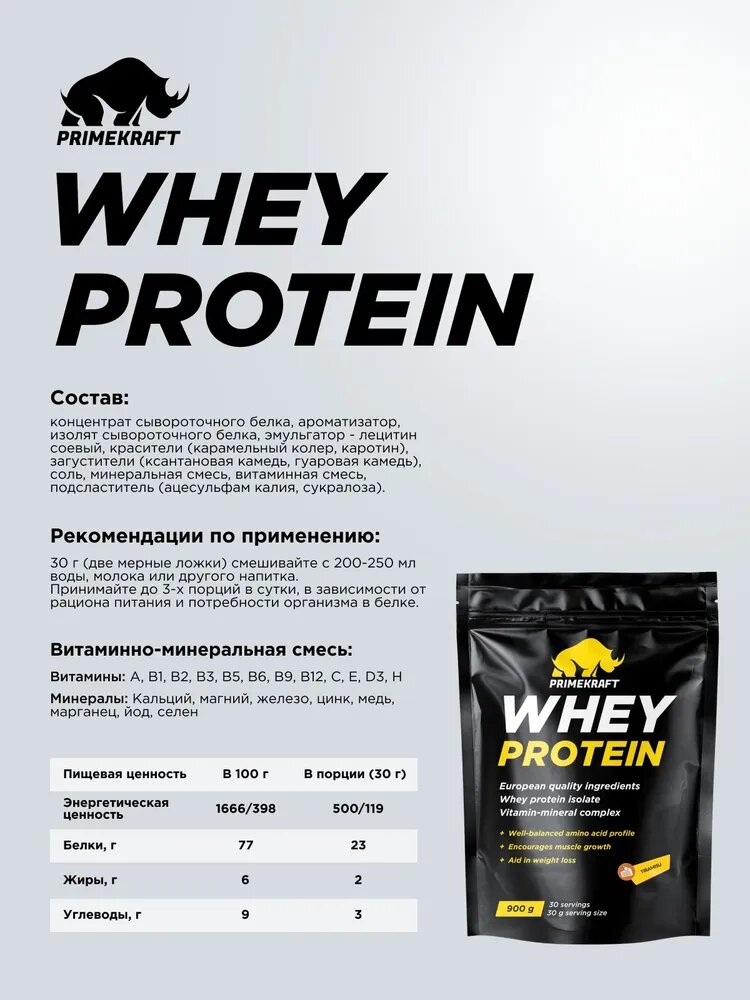 Протеин сывороточный WHEY со вкусом Тирамису Primekraft дойпак 900г ООО ПРАЙМ-КРАФТ (1514044)