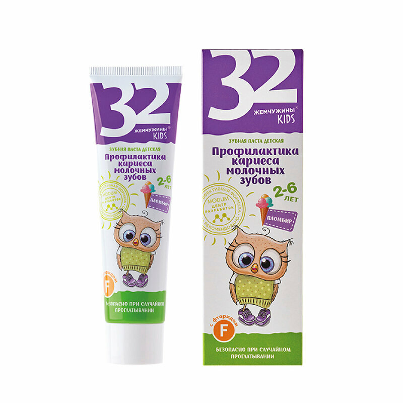 Паста зубная детская Профилактика кариеса молочных зубов Пломбир 32 Жемчужины 60 г Модум-наша косметика СОАО (578696)