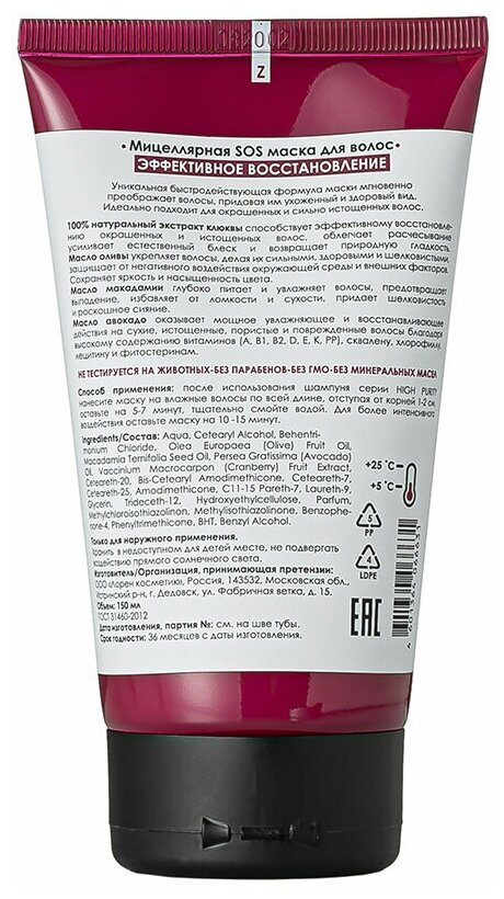 Маска для волос High Purity SOS мицеллярная эффективное восстановление 150мл