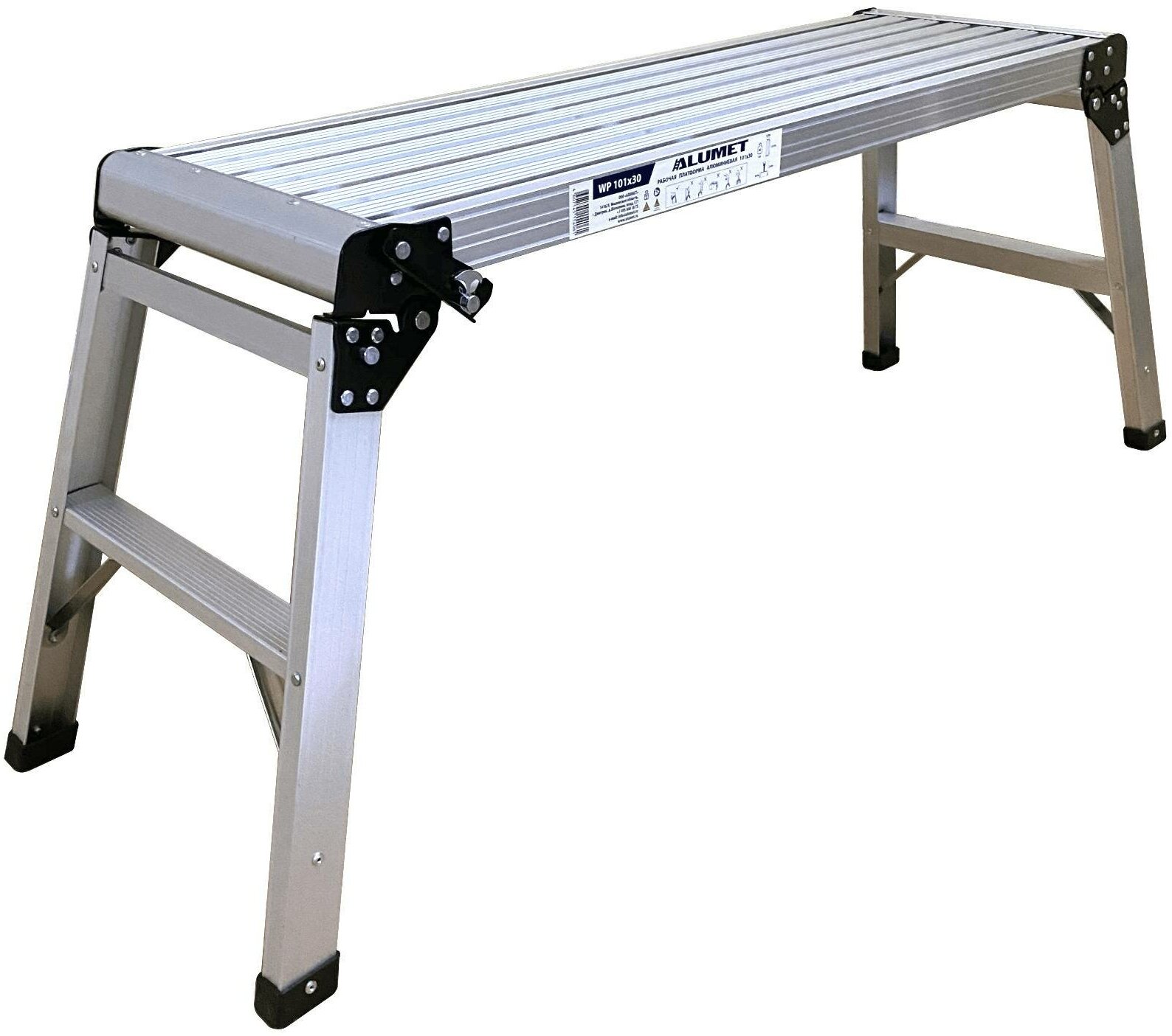 Рабочая алюминиевая платформа Алюмет предназначена для работ на высоте до 2.6 м. Размер площадки: 1.01х0.3 м. Высота площадки: 0.5 м. Прочная конструкция выполнена из алюминия, что обеспечивает высокую прочность и надежность установки. Платформа легко раздвигается и складывается. Защищена от скольжения.
