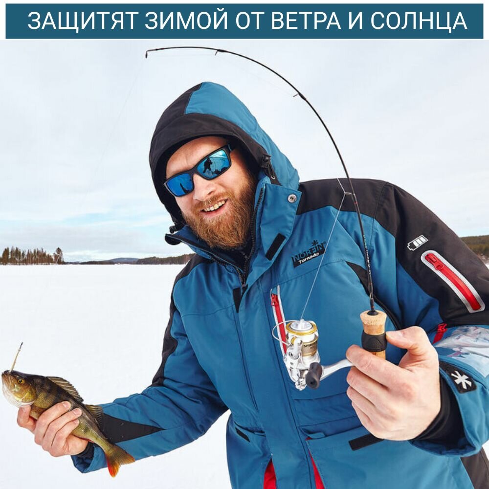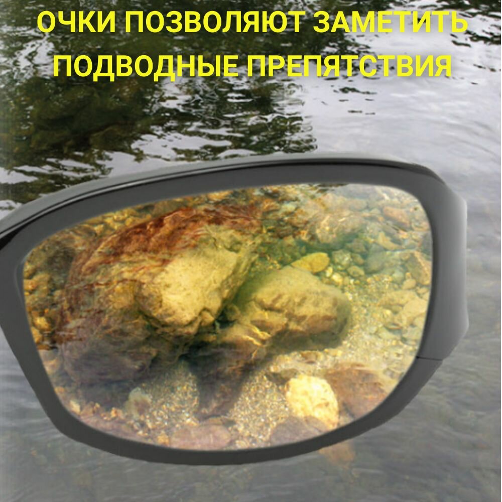 Солнцезащитные очки для рыбалки с поляризационными линзами серо-зелёного цвета. Рекомендуются к использованию в солнечную погоду.