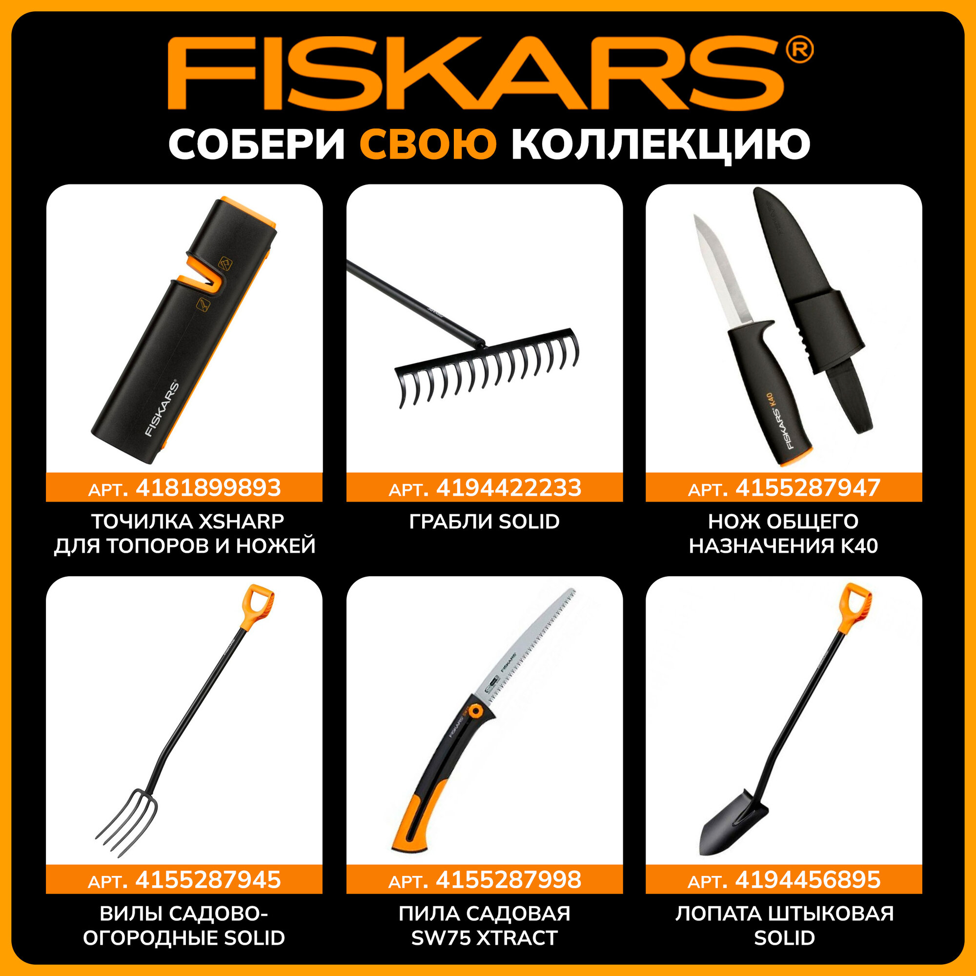 Топор Fiskars 1051146изготовлен с уважением к северным традициям изготовления топоров. Это небольшой универсальный топор для обрезки, рубки небольших деревьев и изготовления щепок. Рукоять топора изготовлена из высококачественной древесины гикори, что придает ей естественный вид.Преимущества Практически невозможно сломать благодаря новому воротнику FiberComp™, который защищает шток от вылета В этот набор также входит точилка. Керамический брусок имеет четко обозначенные канавки как для топоров, так и для ножей Рисунок на боковой стороне точилки указывает правильное положение для заточки топора и ножа