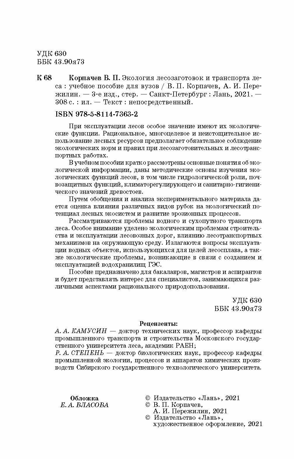 Экология лесозаготовок и транспорта леса. Учебное пособие для вузов (Корпачев Василий Петрович, Пережилин Александр Иванович); Лань, 2021