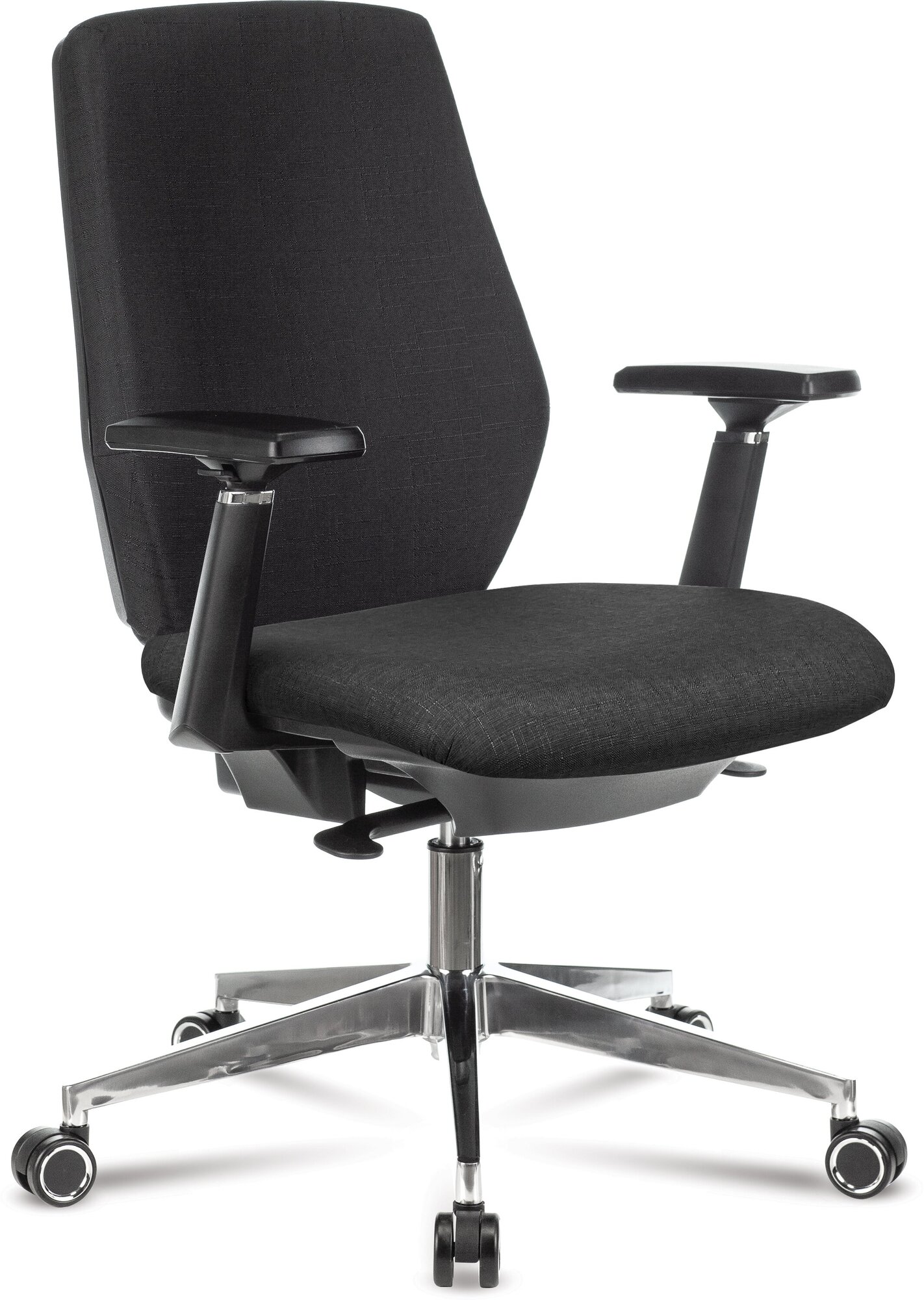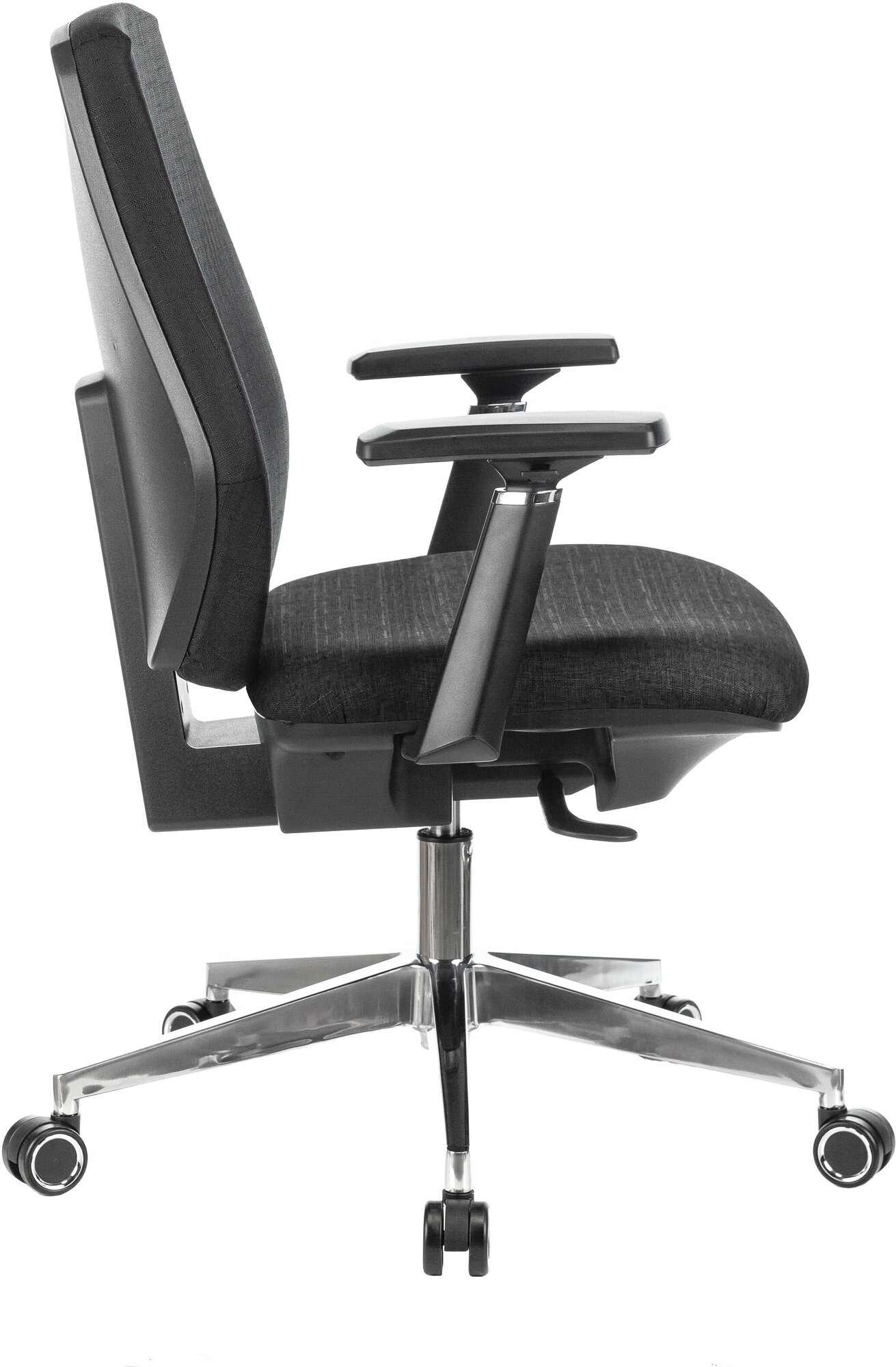 Бюрократ – эргономичное офисное кресло с обивкой из ткани на алюминиевой крестовине. Данная модель оснащена газлифтом, пластиковыми подлокотниками 3D и синхромеханизмом качания с возможностью фиксации в нескольких положениях. Сиденье перемещается по платформе вперед-назад (слайдер). Колеcа подходят для паркета и ламината. Соответствует стандарту BIFMA.