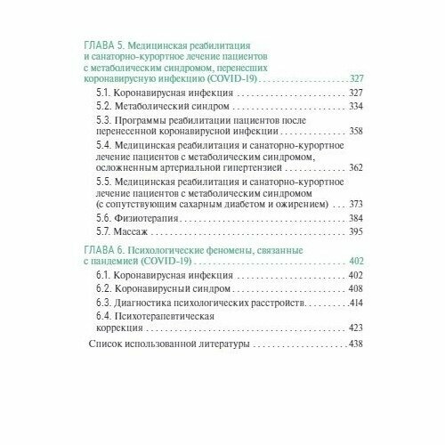 Основу руководства составляют современные принципы назначения различных средств медицинской реабилитации (программы реабилитации) с использованием на курортах/в санаториях активного лечебного (двигательного) режима, различных методов ЛФК и видов массажа, физических факторов, психокоррекции и других видов медицинской реабилитации. Выделены осложнения, вызванные вирусной инфекцией, которые следует учитывать при построении программ реабилитации лиц с метаболическим синдромом, заболеваниями органов дыхания и др. Каждая глава включает описания клинической симптоматики, диагностики основного заболевания и тестов, что позволяет индивидуализировать программы реабилитации в условиях курорта/санатория. Предложены дифференцированные программы реабилитации пациентов, перенесших коронавирусную инфекцию в легкой, средней и тяжелой формах.