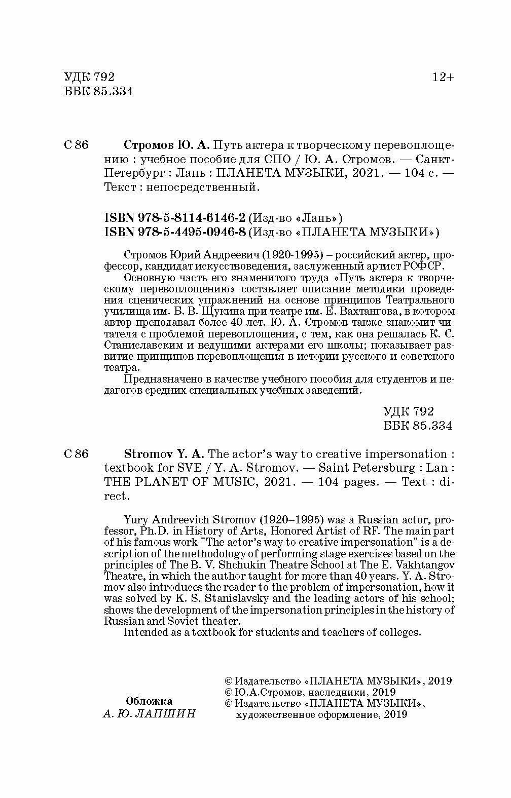 Путь актера к творческому перевоплощению (Ю. А. Стромов); Издательство «Планета музыки», 2024