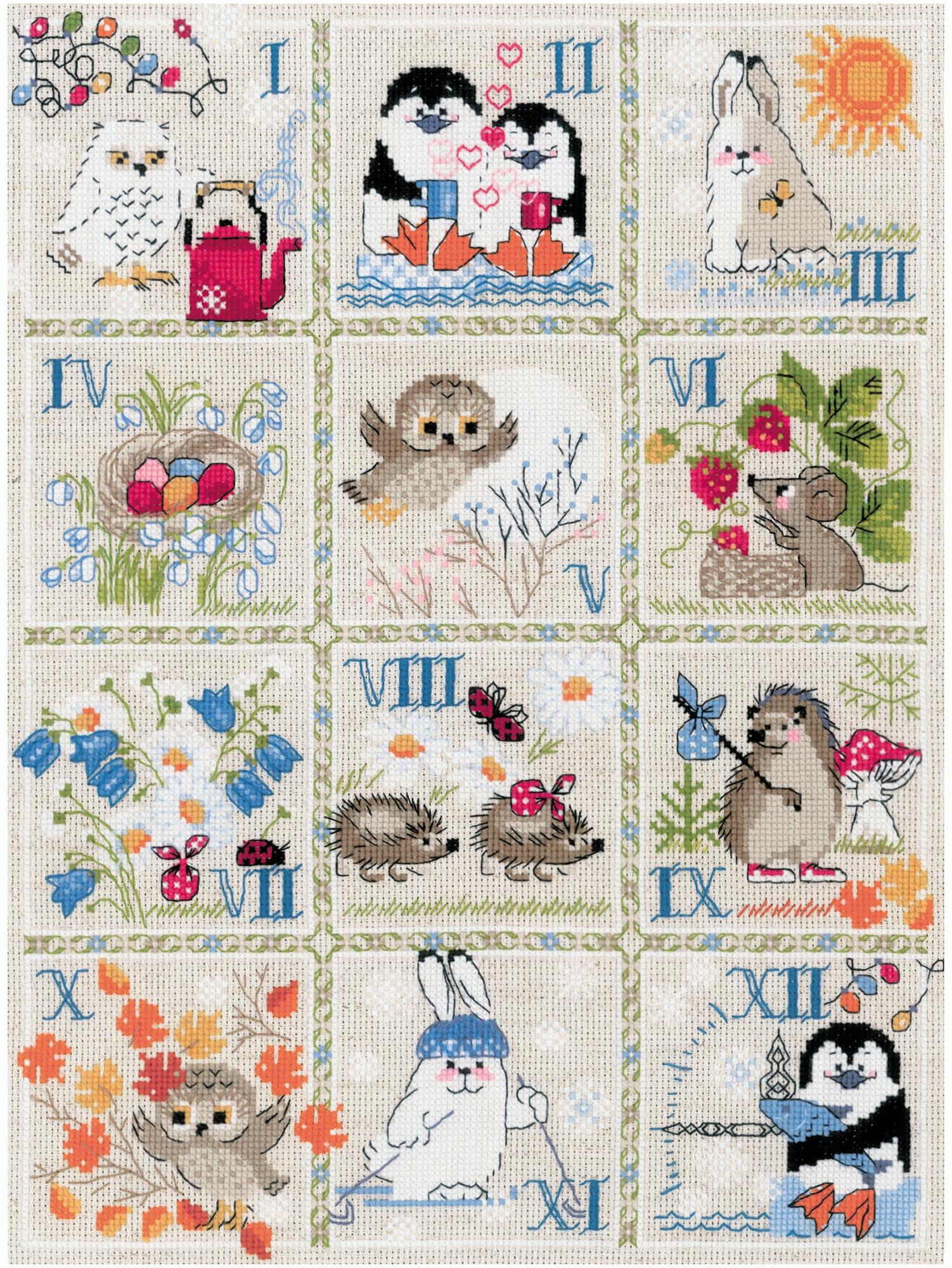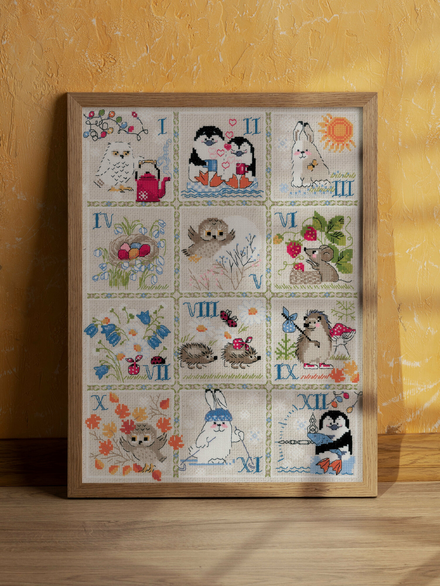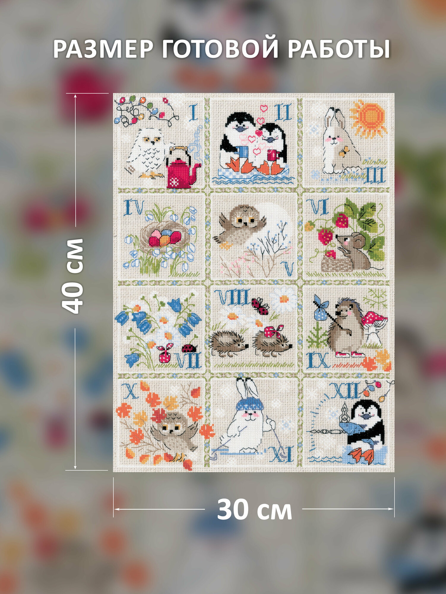 При кажущейся простоте техника 'крест' позволяет создавать настоящие картины богатой палитрой, плавными цветовыми переходами. Чтобы получился отличный результат, нужны качественные материалы, продуманная схема и терпение мастерицы. Вышивка 'Лесной календарь' поможет создать уютную атмосферу, удивит гостей и подарит вам репутацию умелой рукодельницы. Совет: если вам не хватает опыта, сделайте разметку канвы, ориентируясь по схеме. Разметка поможет вам быстрее закончить вышивку и избежать возможных ошибок.