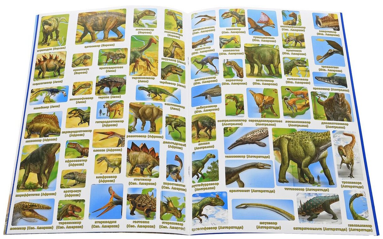 Динозавры существовали на Земле много миллионов лет назад. познакомит детей с этими загадочными существами. Атлас с наклейками «Динозавры» расскажет о том, на каком континенте были найдены окаменелые останки разных видов древних ящеров, в каком историческом периоде они жили, их размер по сравнению с размером взрослого человека, чем питались и как возможно выглядели эти таинственные животные.