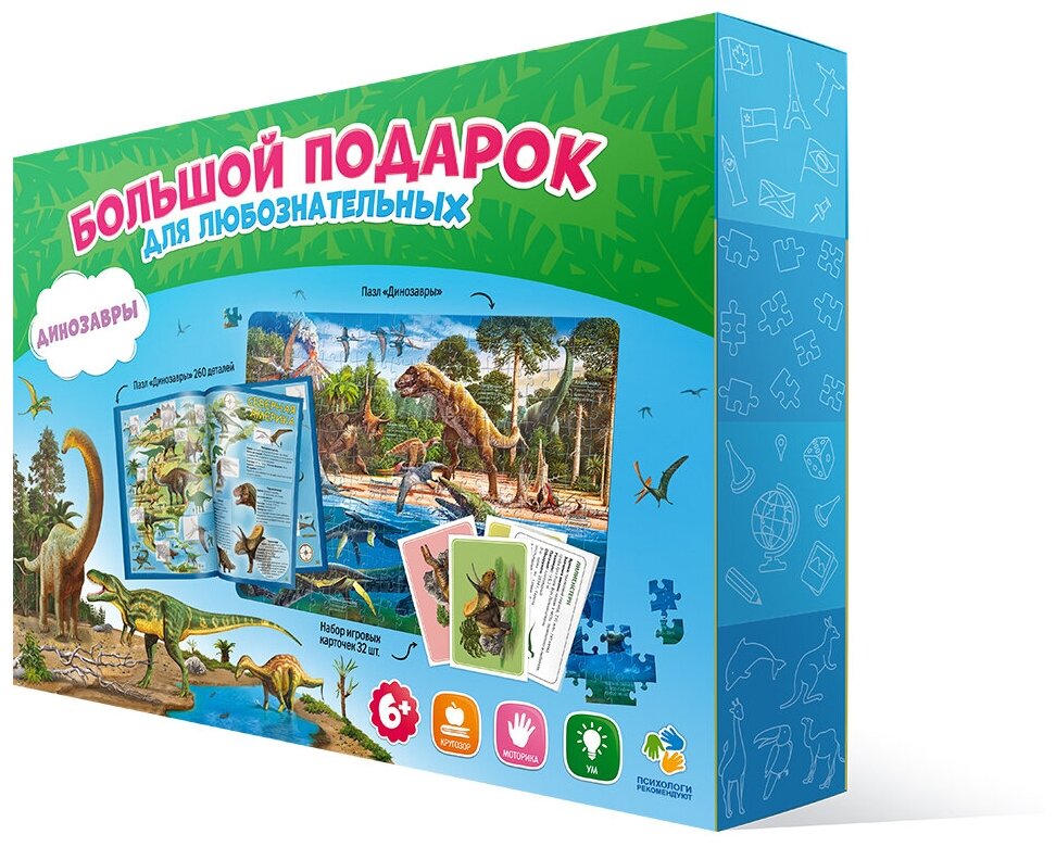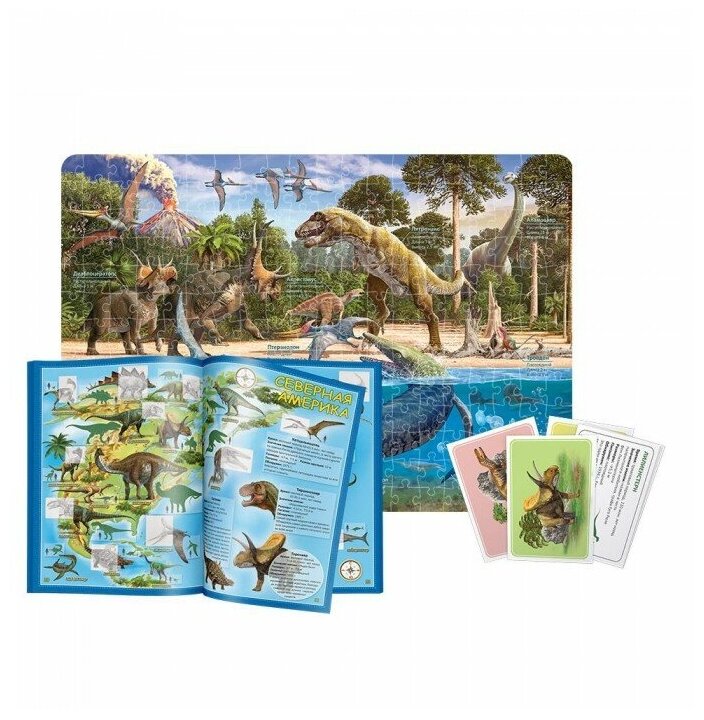 На пазле «Динозавры» представлена реконструкция древних ящеров и их среды обитания, выполненная художником с палеонтологической точностью. Собирая игру-головоломку из 260 деталей, ребенок узнает много нового об этих удивительных существах.