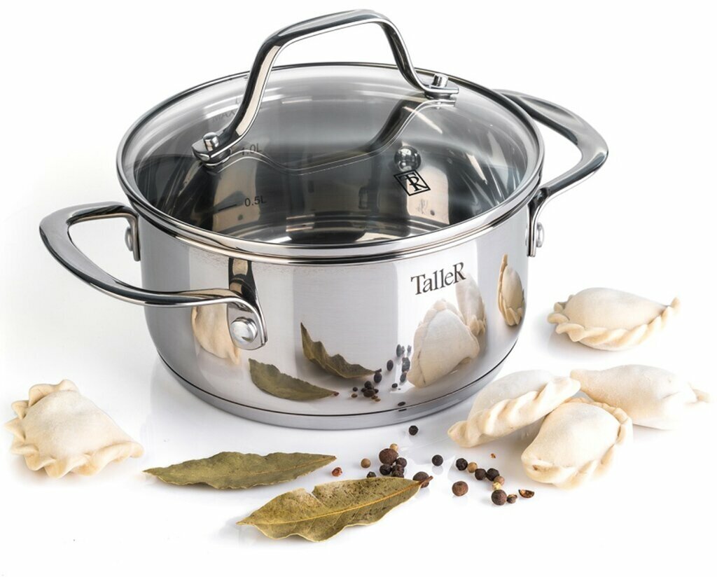 Посуда торговой марки Taller – это сочетание передовых технологий и традиционного английского стиля. Созданная из высококачественных материалов, она воплощает в себе функциональность, практичность и современный дизайн. Кастрюля Taller изготовлена из нержавеющей стали, обладающей высокими антикоррозийными свойствами и устойчивой к деформации. Многослойное капсулированное дно кастрюли обеспечивает быстрое нагревание и равномерное распределение тепла, и надолго сохраняет пищу горячей.