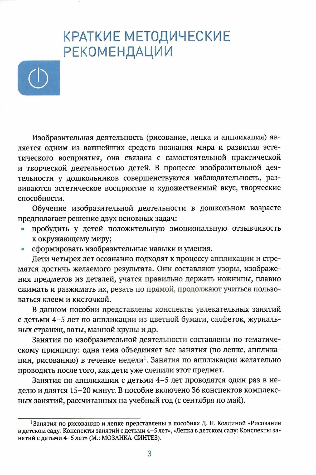 В данном пособии представлены конспекты увлекательных занятий с детьми 4-5 лет по аппликации из цветной бумаги, салфеток, журнальных страниц, засушенных листьев, ваты, манной крупы и др. Эти занятия способствуют положительной эмоциональной отзывчивости у детей к окружающему миру, развитию самостоятельности, настойчивости, аккуратности, трудолюбия, умения доводить работу до конца, формированию навыков аппликации.