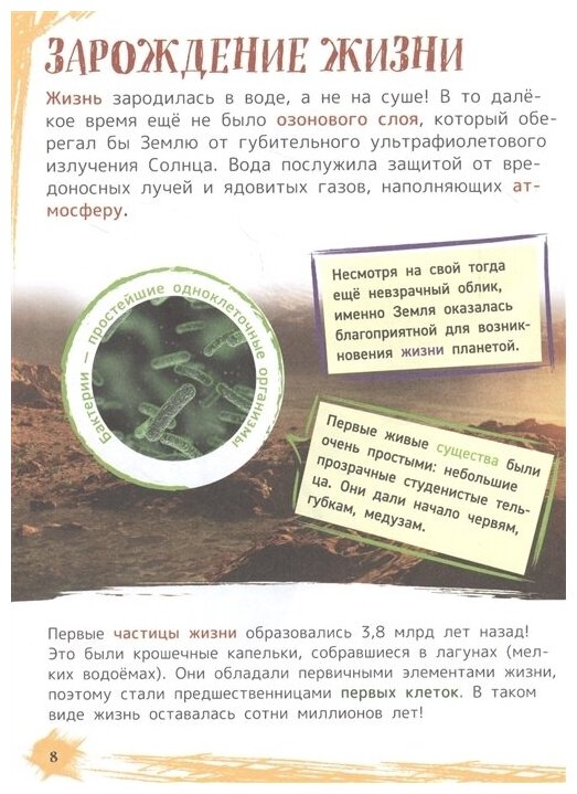 Благодаря этой универсальной энциклопедии малыш сможет совершить миллион открытий: узнать, как на планете Земля зародилась жизнь, увидеть доисторических обитателей нашей планеты, познакомиться со всем многообразием видов животных, насекомых и птиц, исследовать океаны, горы и пустыни, проследить за этапами эволюции человека, изучить его строение, и даже рассмотреть разные виды транспорта. Текст, адаптированный для самых маленьких читателей, и детализированные яркие иллюстрации делают книгу настоящим подарком для любого ребенка.