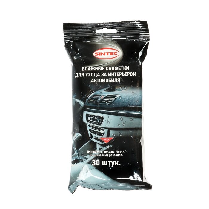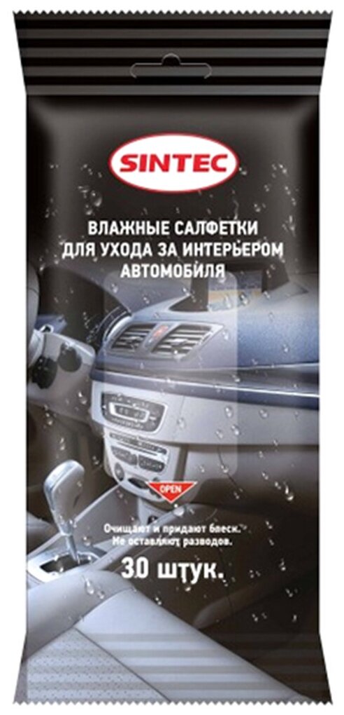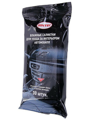 Салфетки влажные Sintec для ухода за интерьером автомобиля 30шт 314196