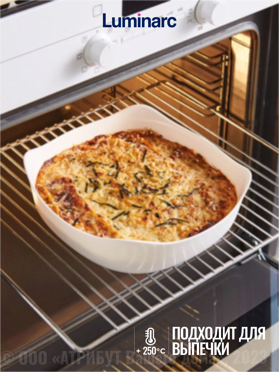 Белая стеклянная формочка для запекания жаропрочная и ударопрочная красивая и практичная. Вписывается в сервировку, что позволяет ставить форму из духовки прямо на стол.