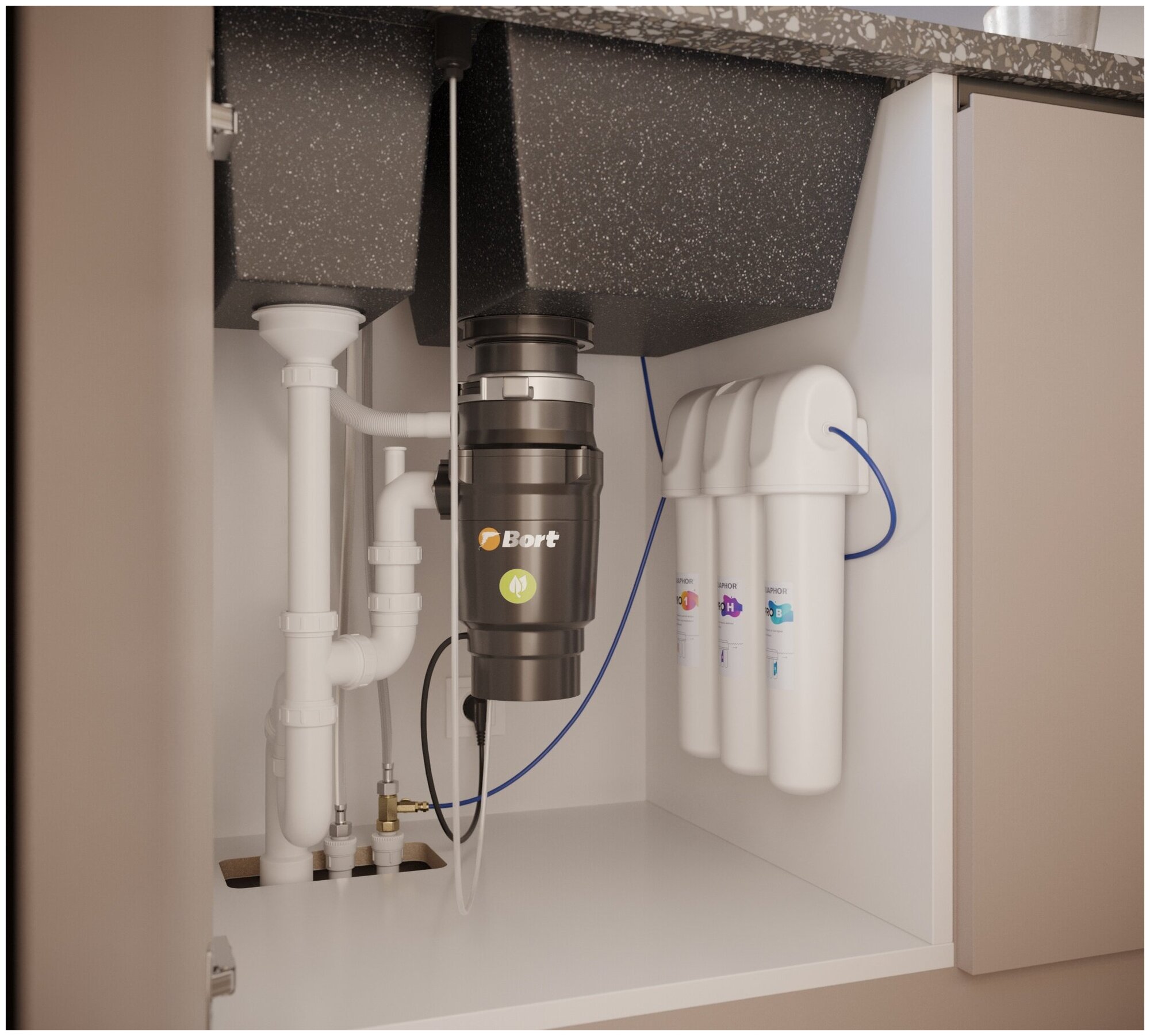 Увеличенный ресурс очистки.Ресурс глубокой очистки увеличен до 10 000 л. Градиентная структура первого модуля меняет пористость от 10 до 3 мкм, что дает повышенную грязеемкость. Второй модуль удаляет частицы до 2 мкм., третий осуществляет финишную очистку благодаря ультрафильтрационной мембране.