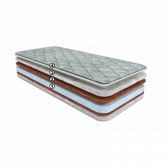 2. Bic-кокос (кокосовая койра) - латексированные волокна кокосового ореха, спрессованные в плиту толщиной 10 мм. Связка Жесткий Natural Foam + натуральное кокосовое волокно придают жесткость основе матраса.