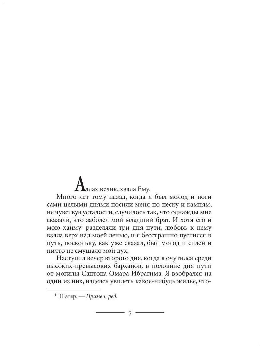 Увлекательная книга, которая дает представление о жизни туарегов в пустыне, хорошо описан их быт. Читая книгу, погружаешься в мир туарегов, где царят свои законы и чтутся свои традиции. Книга читается легко, сюжет затягивает и вызывает чувство сопереживания главному герою. Отличная книга, чтобы понять культуру этого удивительного народа и ход их мыслей, а мыслят они совсем иначе, не как дети цивилизации. После прочтения книги, появилось желание поехать в пустыню и познакомиться с этим удивительным народом.