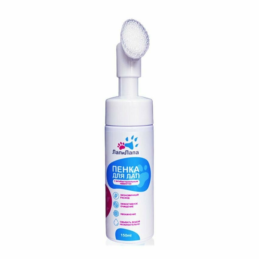 Пенка для лап в инновационной форме флакона с силиконовой щеточкой.Благодаря щеточке очищение лап более глубокое, эффективное, приятное для питомца.Средство имеет мягкую формулу, содержит антибактериальные и заживляющие компоненты, не содержит фосфатов и красителей. Глубоко очищает кожу лап от реагентов и загрязнений. Оставляет лапы чистыми, увлажненными и ухоженными. Способствует восстановлению поврежденного эпидермиса.Формула пенки разработана в России с учетом климатических и экологических особенностей.После применения пенки достаточно удалить остатки средства и грязи влажной губкой или влажной салфеткой. При необходимости щеточка легко снимается и промывается водой.