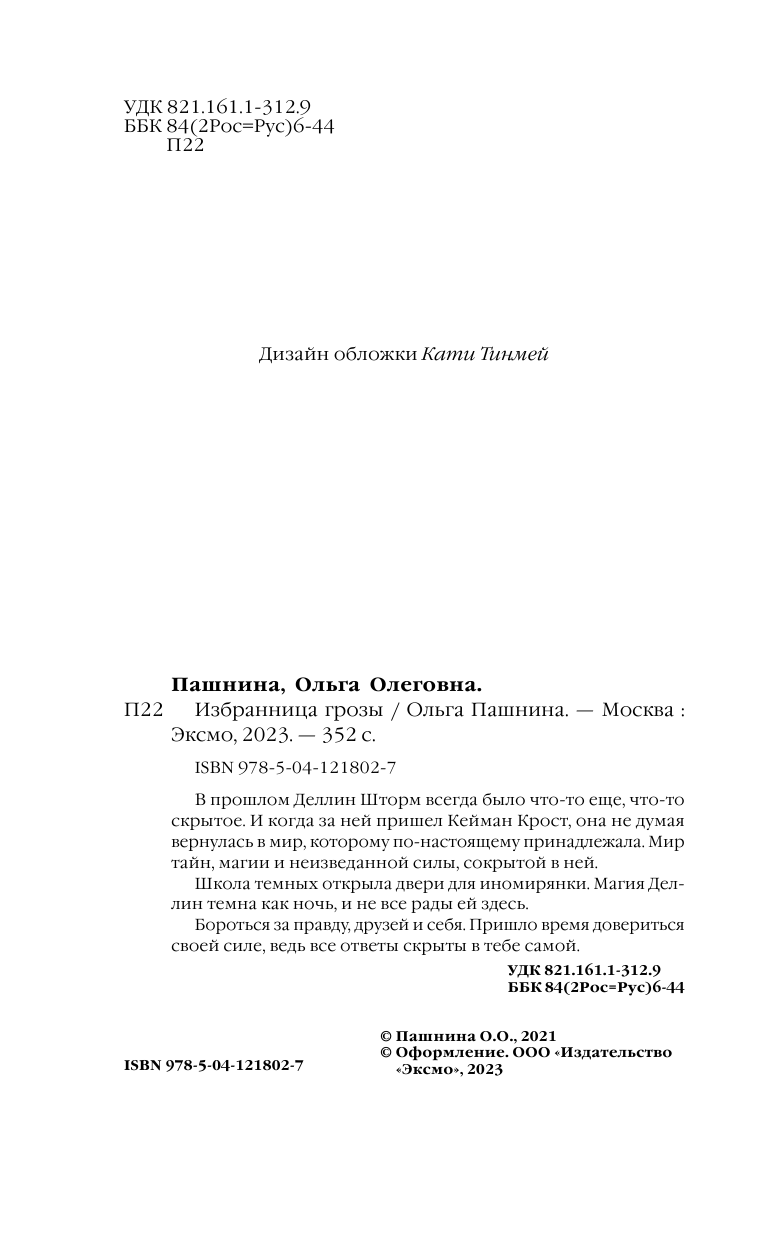 Книга: Избранница грозы (Пашнина Ольга Олеговна); ООО "Издательство "Эксмо", 2021
