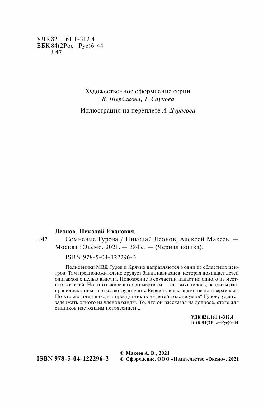 Книга: Сомнение Гурова (Леонов Николай Иванович, Макеев Алексей Викторович); Эксмо, Редакция 1, 2021