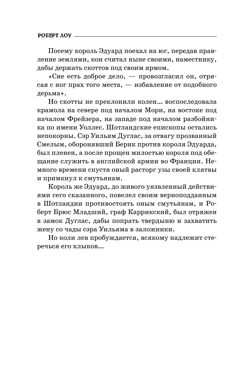 Одно из главных противостояний Средневековья. История восхождения и славы отчаяннейшего короля Европы. Мастер исторического романа Роберт Лоу создал самую точную и живую реконструкцию смертельной схватки Англии и Шотландии - соседей-врагов.