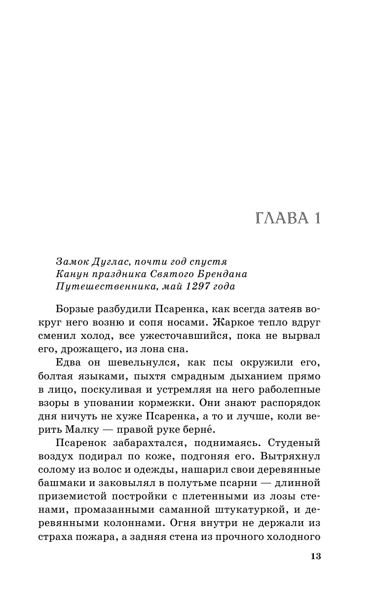 Хорошая серия исторических романов от передовых современных авторов. О спартанцах Игульдена я уже прочитал. Если данный роман рекламирует Бен Кейн, то это говорит о многом! Еще не читал, но в предвкушении, особенно, как любитель Храброго сердца. Немного смутили комментарии на счет некачественного перевода. Качество: бюджет, шрифт комфортный для чтения. Изредка встречаются примечания, иллюстрации отсутствуют. Глядя на переплет, складывается ощущение, что книга развалится после прочтения пары десятков страниц.