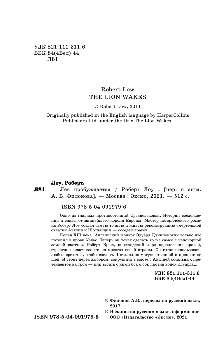 Книга: Лев пробуждается (Роберт Лоу); Эксмо, Редакция 1, 2021