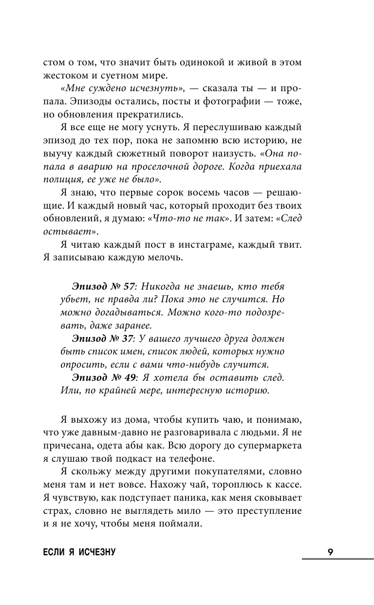 Сера неустанно следит за каждым подкастом, знает их наизусть, данная проблематика целиком и полностью ее поглотила. Она может слушать голос Рэйчел часами - в постели, в машине, в магазине.