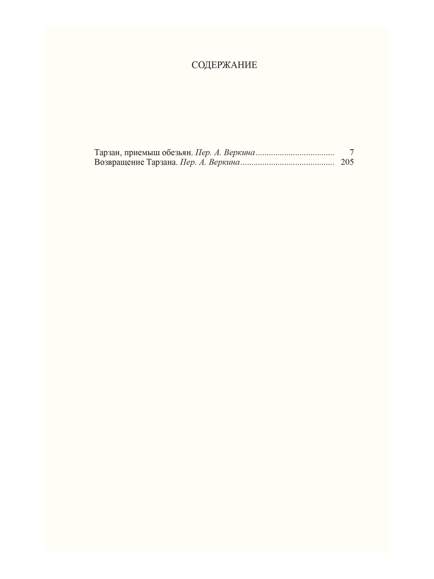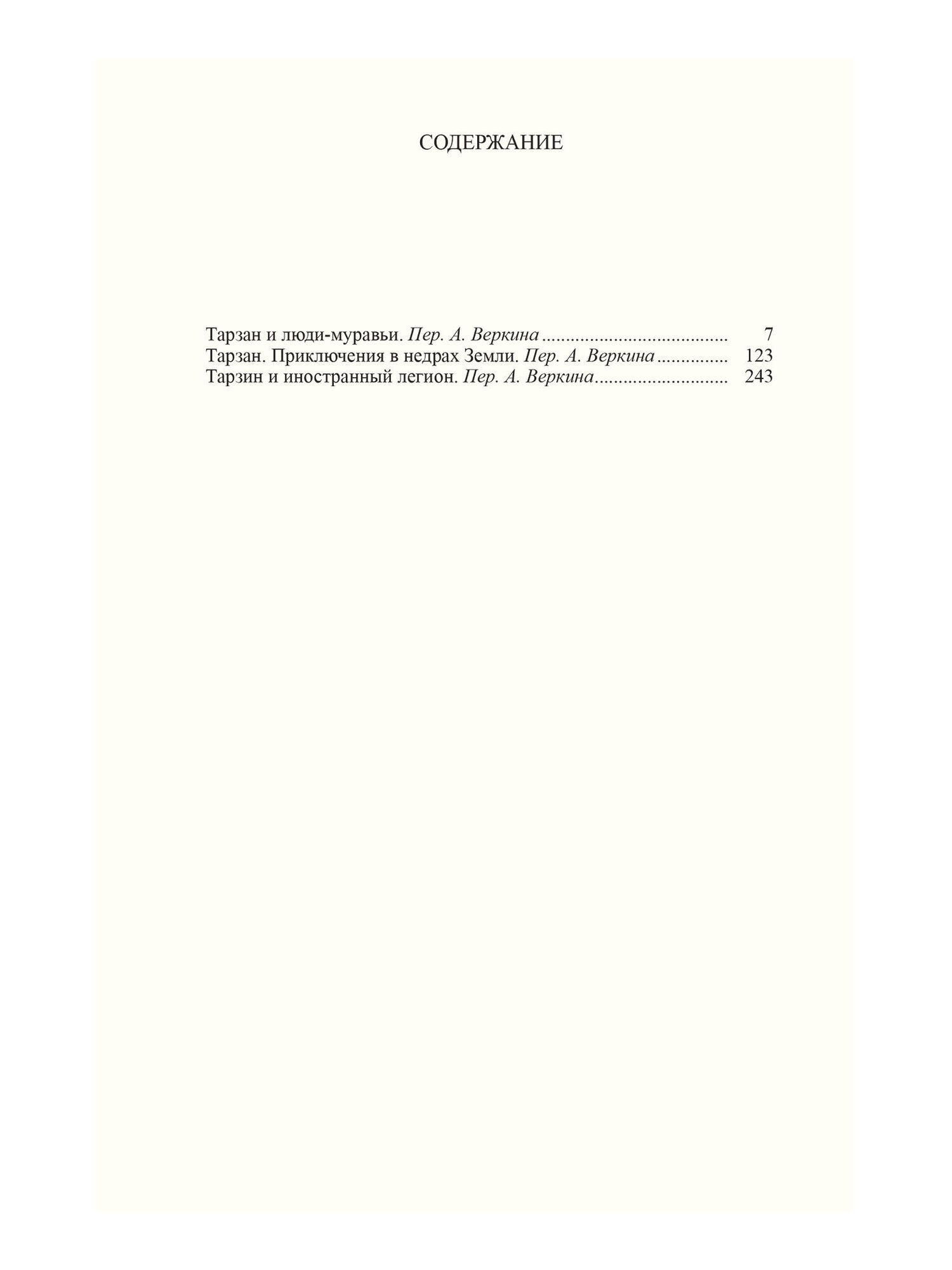 Т. 1. Тарзан, приемыш обезьян; Возвращение Тарзана. – 400 с . Т. 2. Тарзан и звери; Тарзан и сокровища Опара; Тарзан и золотой лев. – 496 с. Т. 3. Тарзан и люди-муравьи; Приключения в недрах земли; Тарзан и иностранный легион. – 432 с. В три тома «Избранного» вошли наиболее интересные романы: «Тарзан, приемыш обезьян» (самый первый и самый известный из всего цикла роман), «Возвращение Тарзана», «Тарзан и звери», «Тарзан и сокровища Опара», «Тарзан и золотой лев», «Тарзан и люди-муравьи», «Приключения в недрах земли» и «Тарзан и иностранный легион». Весь цикл о Тарзане включает в себя 25 романов. Берроуз долго искал себя в жизни, поменял много мест работы, но не оставлял литературное творчество. Военный по образованию, он работал и продавцом, и полицейским, и клерком в чикагских конторах, бухгалтером, рекламным агентом, коммивояжером, пробовал поймать птицу удачи за хвост на приисках, пас коров в Айдахо и даже планировал уехать в Китай инструктором по верховой езде... Первый роман о Тарзане был опубликован в 1912 году и не прошел незамеченным. История Тарзана увлекла читателей, и последующие романы стали появляться очень быстро и расходились немыслимыми тиражами. Благодаря успеху в литературной работе и огромным гонорарам Берроуз смог поправить свое финансовое положение, купил ранчо в Калифорнии, которое назвал Тарзания. Приключения маленького лорда Грейстока, родившегося в диких джунглях, выкормленного и воспитанного обезьяной по имени Кала, встретившего свою любовь Джейн Портер и сумевшего отстоять законное право на имя предков, покорили множество сердец. Конечно, Берроуз идеализирует своего героя, например, Тарзан самостоятельно сумел освоить грамоту и научился читать по старым книгам, сохранившимся в хижине его погибших родителей, Тарзану не чужды сострадание и забота о ближнем, несмотря на то, что вырос он среди диких зверей и главным правилом в его жизни было – выживает сильнейший. Но за это Тарзана и полюбили читатели – благородство, обостренное чувство справедливости, искренние чувства. Тарзан был идеалом мужественности, а его подруга Джейн – идеалом женственности. Простота слога, четкое разделение на положительных и отрицательных героев, романтика диких джунглей, незамысловатая интрига и уверенность в том, что каждый получит по заслугам, – все это читатель найдет в романах о Тарзане. Именно трудами Берроуза окончательно оформилась приключенческая фантастика как направление беллетристики, он сам считается одним из отцов-основателей фантастики XX века, а Тарзан стал одним из самых популярных образов массовой литературы. Многие авторы, в том числе Рей Брэдбери, говорили, что он оказал существенное влияние на их творчество. Цикл романов о Тарзане породил множество коммерчески успешных кинофильмов и мультфильмов, компьютерных игр и даже японских комиксов. По прошествии ста лет эти романы, как и прежде, переиздаются и пользуются успехом, существует много авторов — продолжателей оригинальной серии, что говорит о том, что Тарзан сохранил свою притягательность для читателей и зрителей всех возрастов.