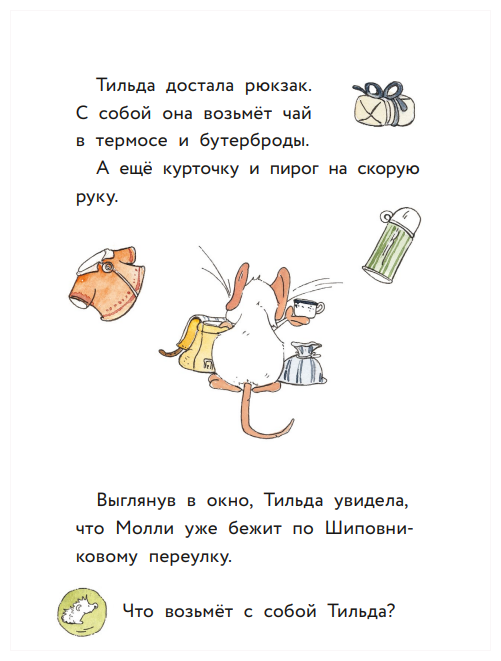 Короткая и забавная история с детективным и загадочным сюжетом впервые представлена в новом формате — для первого самостоятельного чтения. Текст адаптирован — использованы простые и знакомые ребёнку слова, простые предложения, история разбита на короткие главы, чтобы не утомить ребёнка. В конце каждой главы есть вопрос по содержанию и лёгкое игровое задание (ответы даны в конце книги). Это поможет ребёнку лучше понять текст и вспомнить содержание, а также послужит развитию речи. Истории про мышку Тильду ребёнок раньше слушал, а теперь может прочитать сам, начав с этой книги.