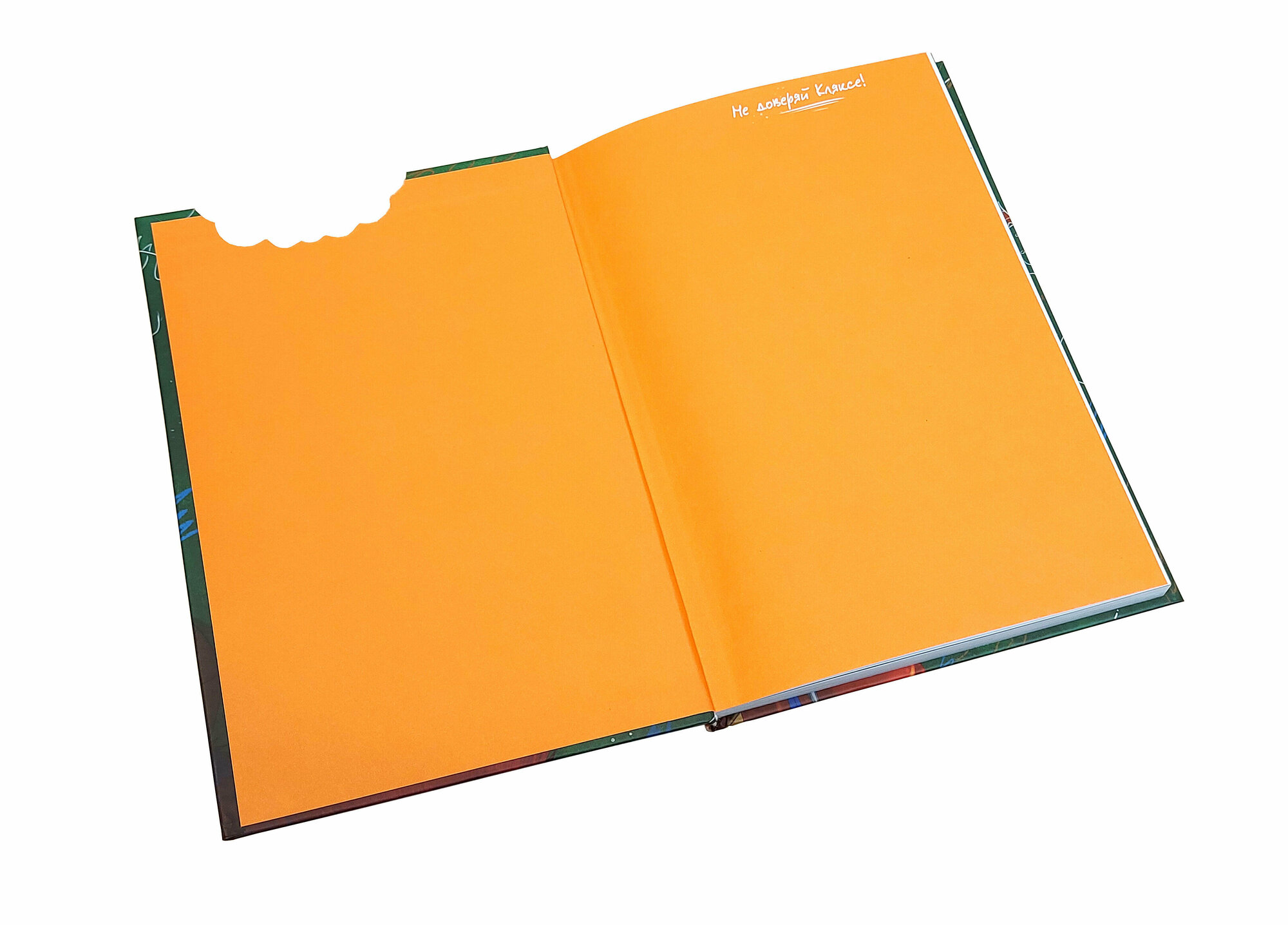 Очень эффектное оформление! Кажется, какой-то монстр откусил часть обложки!
