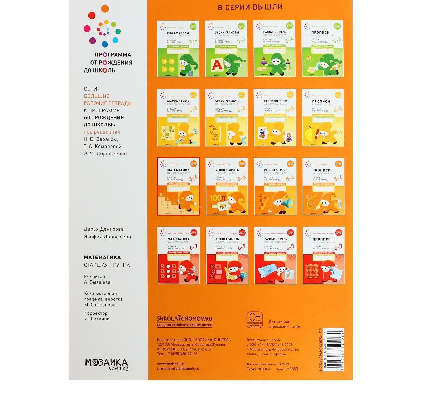 Математика в детском саду. Рабочая тетрадь. 5-6 лет. (Дарья Денисова); МОЗАИКА kids, 2022
