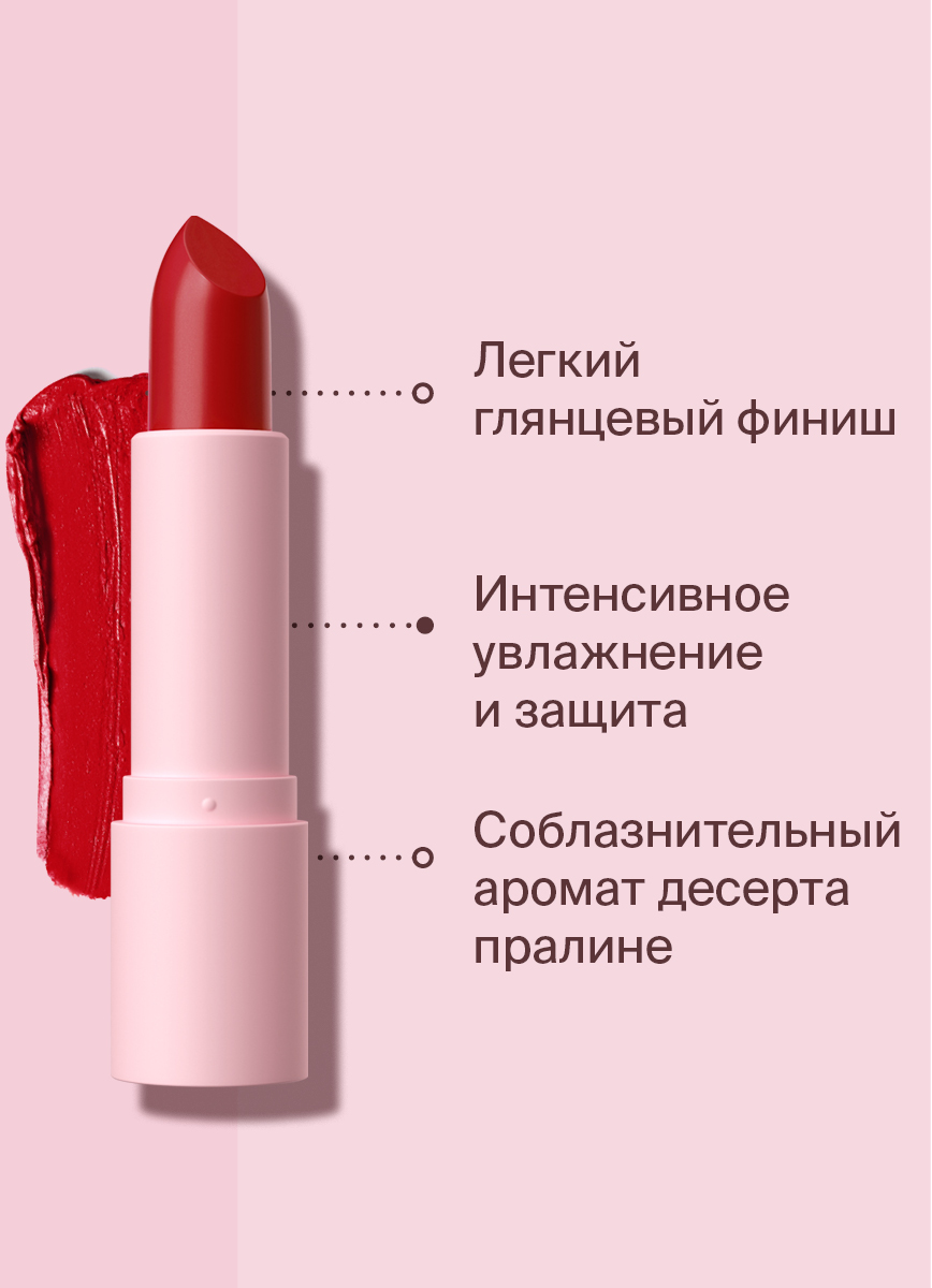 Нежная кремовая помада с легким глянцевым эффектом. Тающая текстура мягко ложится, окутывая губы соблазнительным цветом. Формула помады, обогащённая маслом миндаля, маслом виноградной косточки и витамином Е, глубоко увлажняют и защищают чувствительную кожу губ.