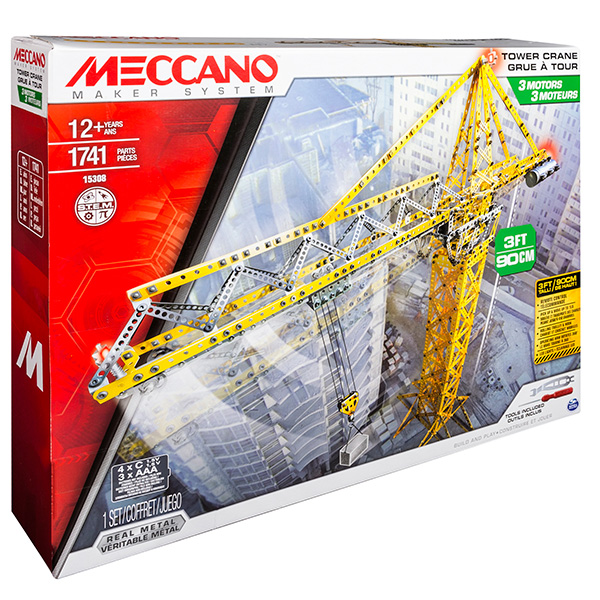 Узнайте, как высоко может взобраться ваше воображение, когда вы соедините мир реального инженерного искусства с мощным подъемным краном! Конструктор Meccano "Строительный кран" с тремя моторами для поднятия грузов, углом поворота на 360 градусов и светодиодными лампами - это то, что вас непременно удивит. К стреле крана прикреплена тележка с колесиками, в которой можно поднимать объекты весом до 450 грамм.