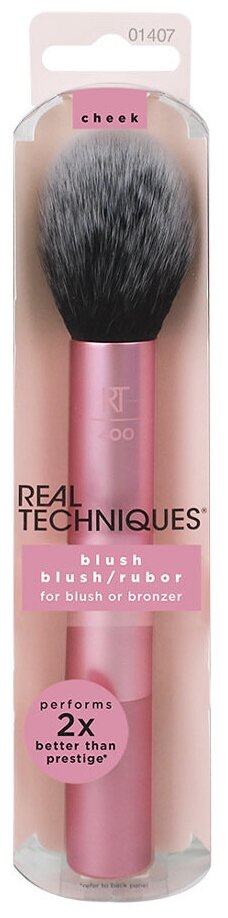 Кисть Blush Brush от RealTechniques – удобная таклоновая кисть для создания роскошного и естественного румянца. Blush Brush имеет плотно сбитый упругий и мягкий ворс длинной 5 см, сделанный из таклона – синтетических волокон, которые по своим свойствам максимально приближены к натуральному меху.