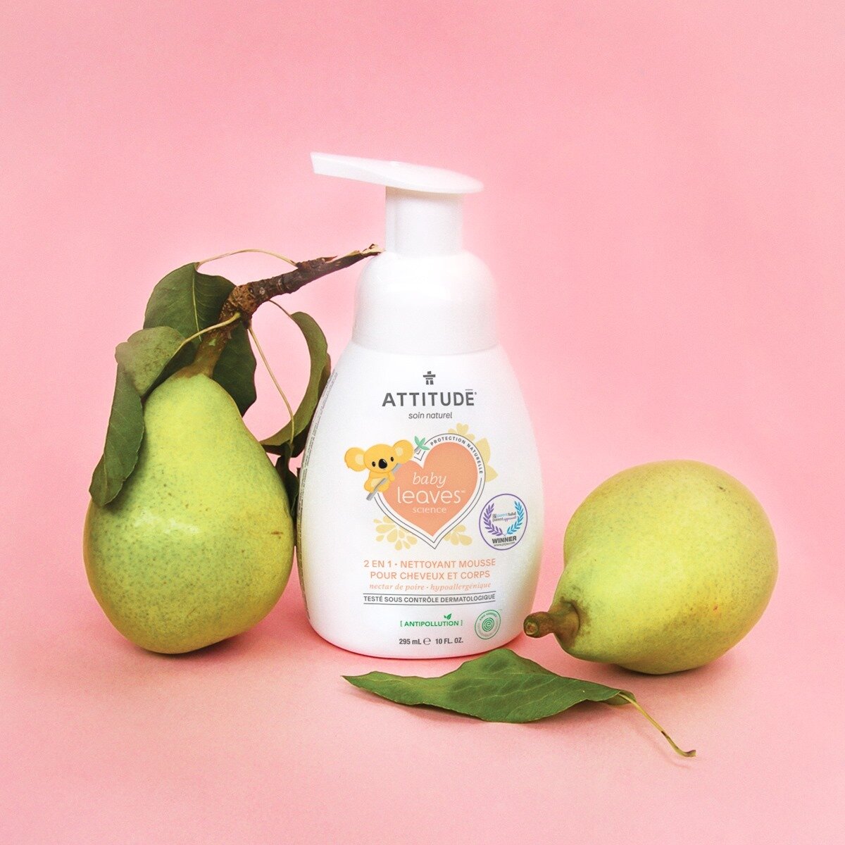 Пенка детская Attitude Baby leaves для волос и тела 2в1 Грушевый нектар 295мл