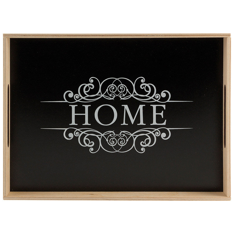 Материал: МДФ, фанера Размер изделия: 32*27*5 см Индивидуальная упаковка: термоусадочная пленка+стикер Бортики выполнены из неокрашенной фанеры, дно черное с принтом "HOME". На боковых бортах есть ручки для удобной переноски Хранить при влажности помещения от 40% до 70%.